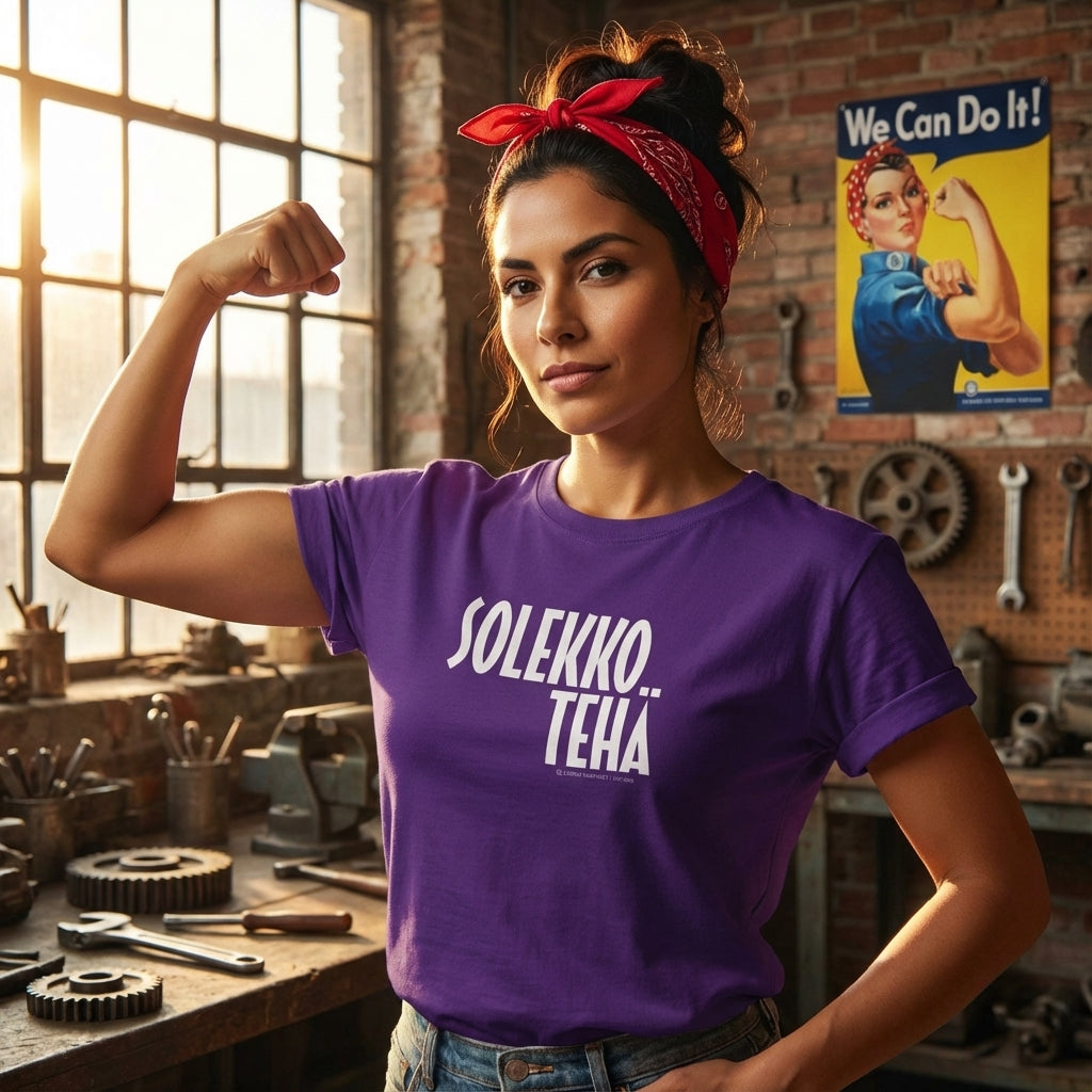 Helppoa, ala sieki raataamaan hoon päältä! Vilkase vaikka tämä Sole poka mikhään t-paita lepposalla kirjasimella.
